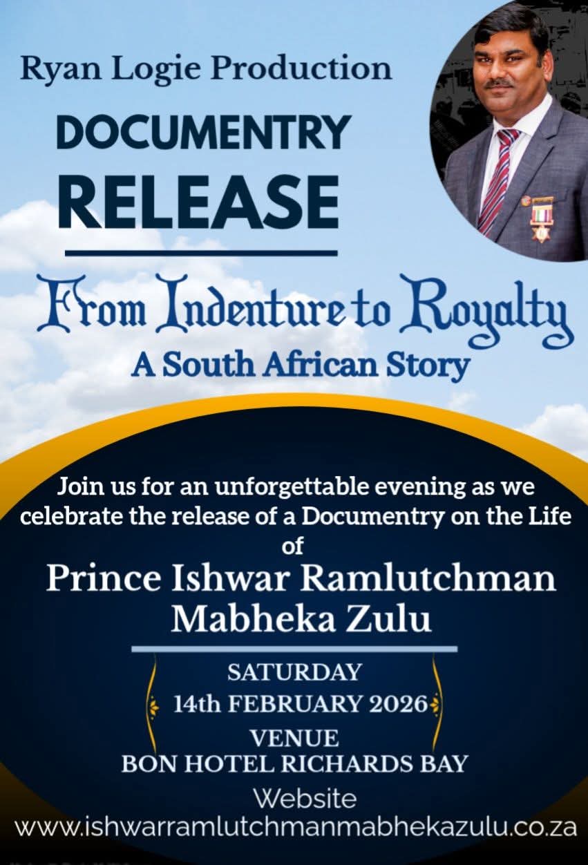 Ryan Logie Productions, in association with India’s global Zee TV, has announced the release of From Indenture to Royalty — a stirring South African documentary that explores nation‑building, social cohesion, and the spirit of ubuntu through the extraordinary life of Prince Ishwar Ramlutchman Mabheka Zulu.